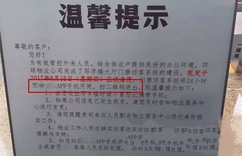 近日在成都便發(fā)生了一起“移動(dòng)門(mén)禁擾人事件”:某區部署移動(dòng)門(mén)禁,開(kāi)啟APP進(jìn)出時(shí)代。簡(jiǎn)單地說(shuō)便是要求住戶(hù)在進(jìn)門(mén)前必須下載安裝APP,通過(guò)軟件掃碼進(jìn)入,如以下告示所示: